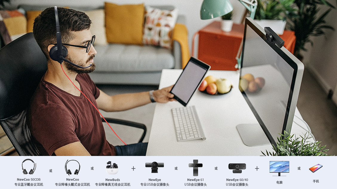 适用于工位场景,根据不同员工的工作场景,配置个性化解决方案,满足工程绘图、数据分析、客服话务、记者采访远程视频会议、工位日常语音沟通等场景。