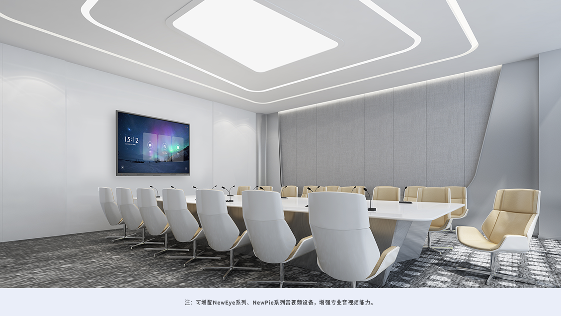 专为大型培训室、报告厅等场景匠心打造,可直接用于汇报、展览展示,实现高清视觉体验。其灵活的设计允许轻松搭配摄像头和麦克风,完美满足远程会议的音视频专业需求,确保会议体验无缝切换,高效流畅。