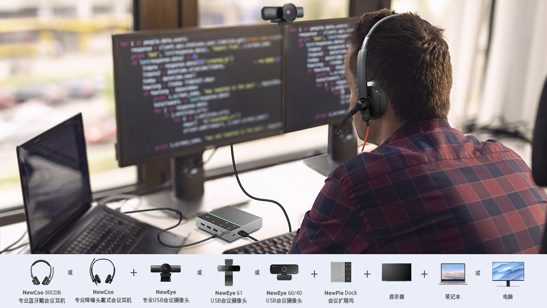 适用于工位场景,根据不同员工的工作场景,配置个性化解决方案,满足工程绘图、数据分析、客服话务、记者采访远程视频会议、工位日常语音沟通等场景。