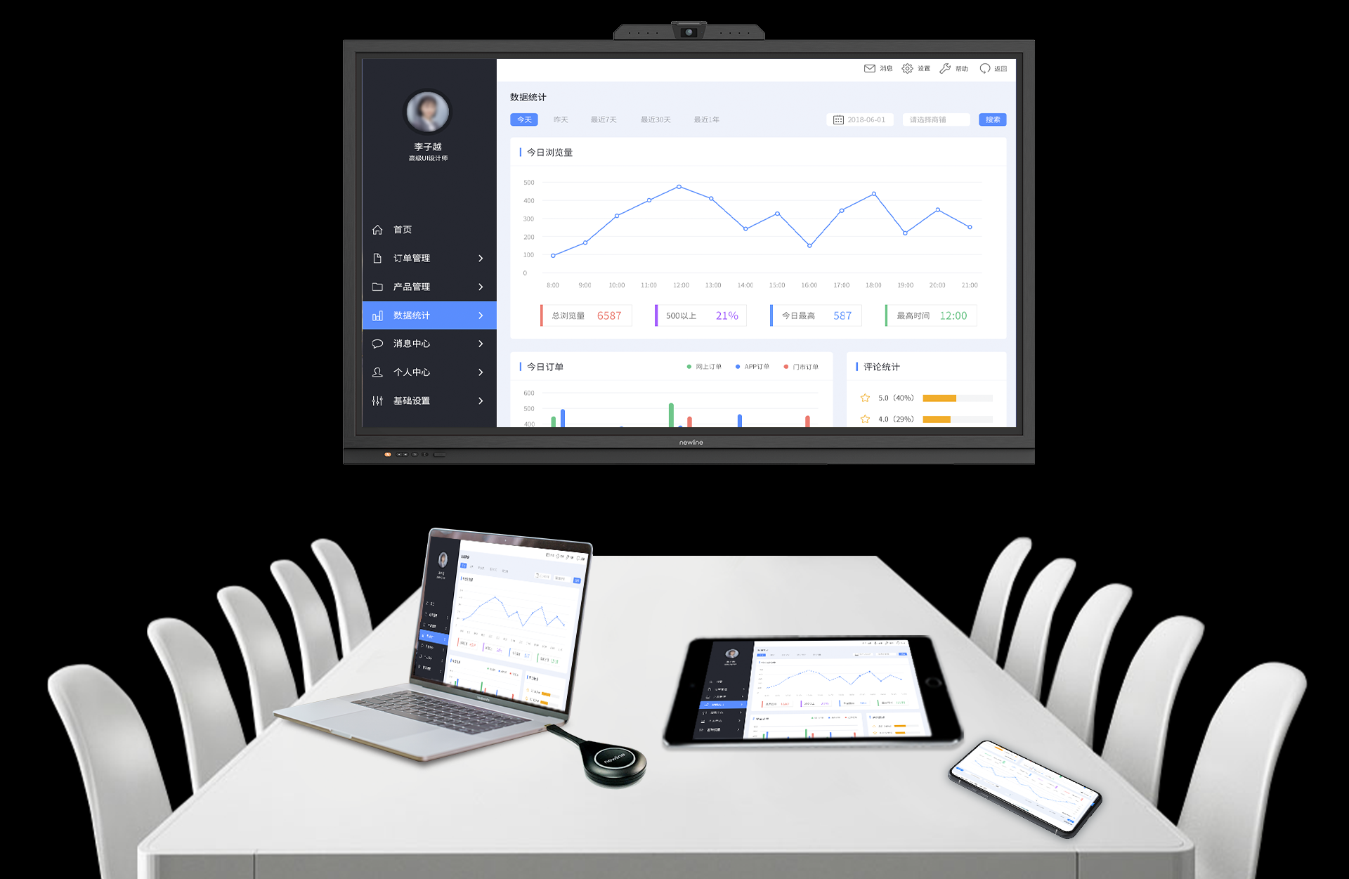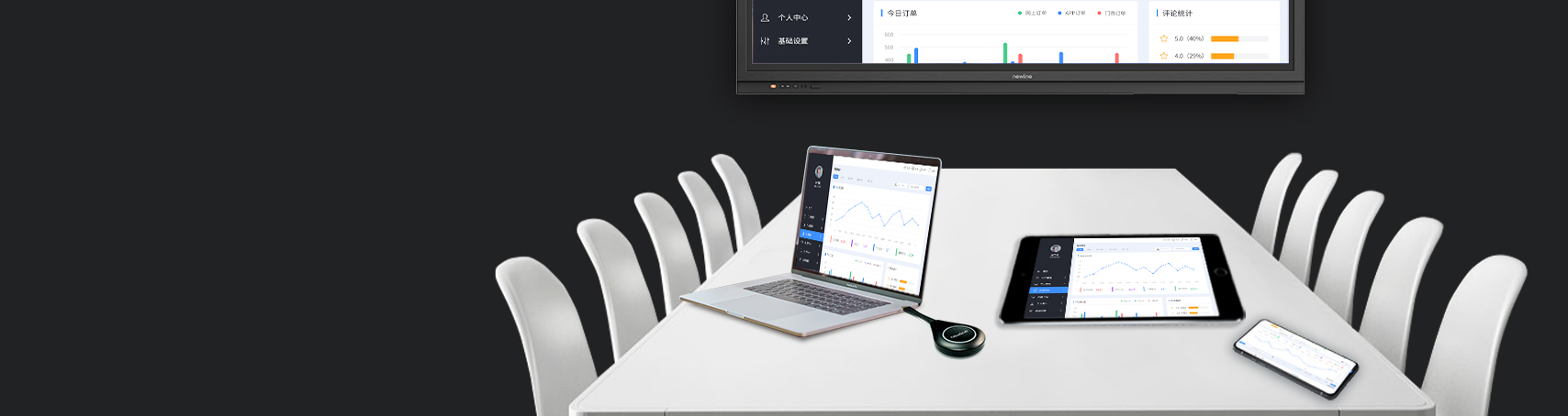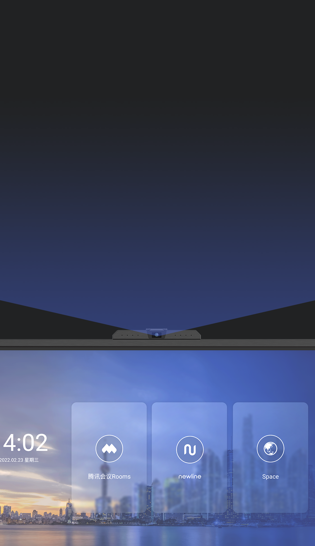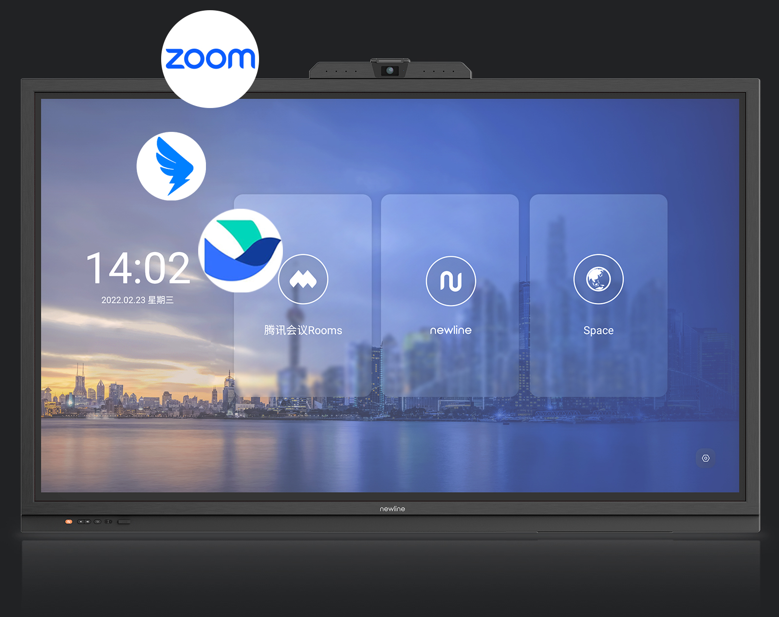 Newline OS 3.0,云+端+空间,更灵活的UI设计,兼容适配腾讯会议Rooms、飞书Rooms国内主流云会议软件,满足不同用户使用需求;无需ops设备,降低用户使用成本和采购成本,快速一键开启云视频会议。