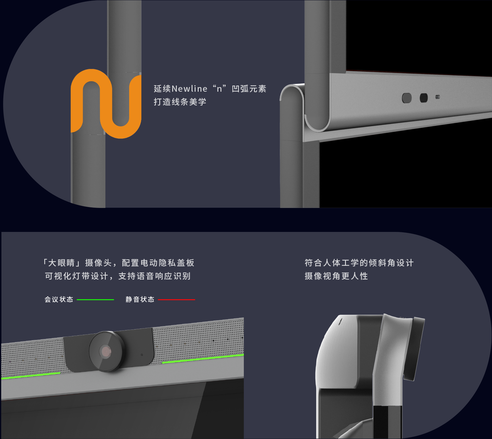 延续Newline“n”线条美学,无边框视觉设计,简约时尚,展现专业商务范;内置跑马灯、磁吸遥控器(可拆卸),实用又美观,满足高端商务人群对于实用与美观的双重追求。