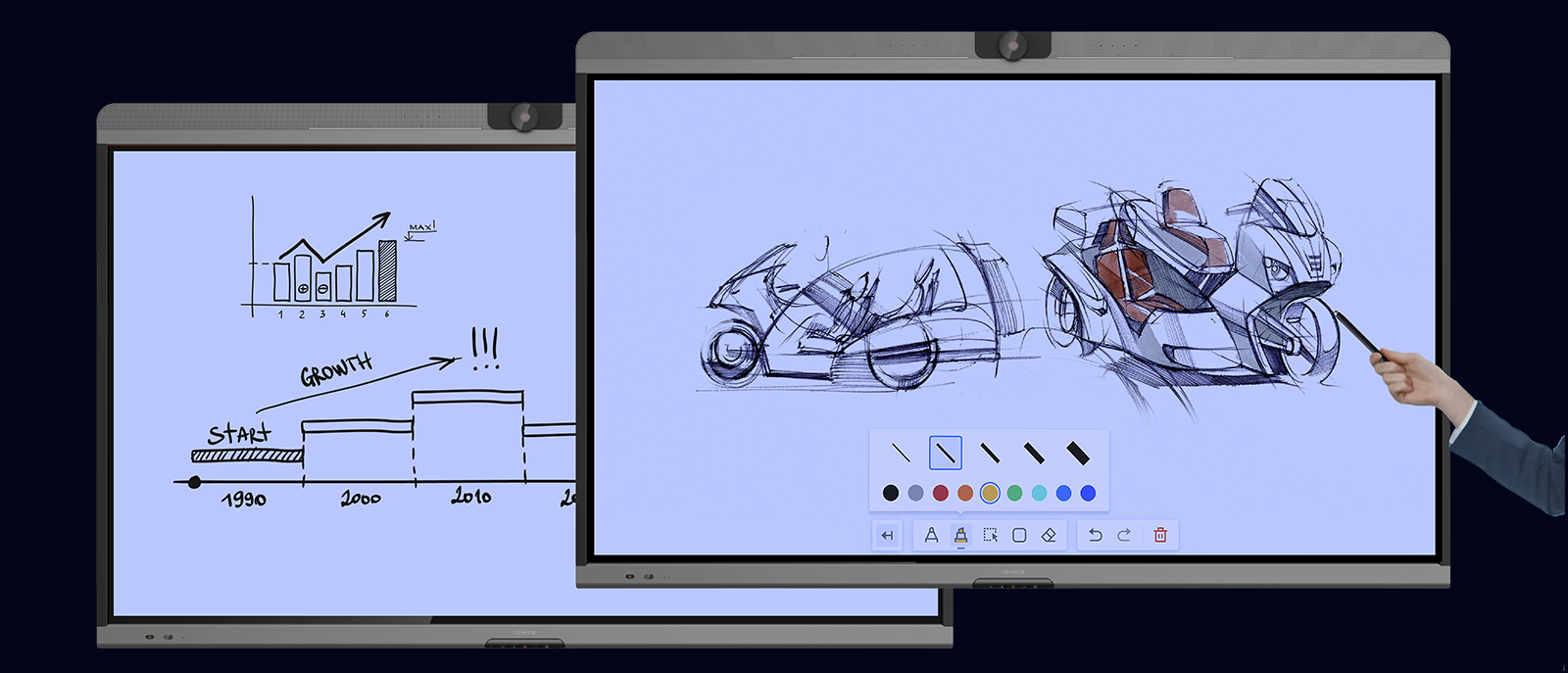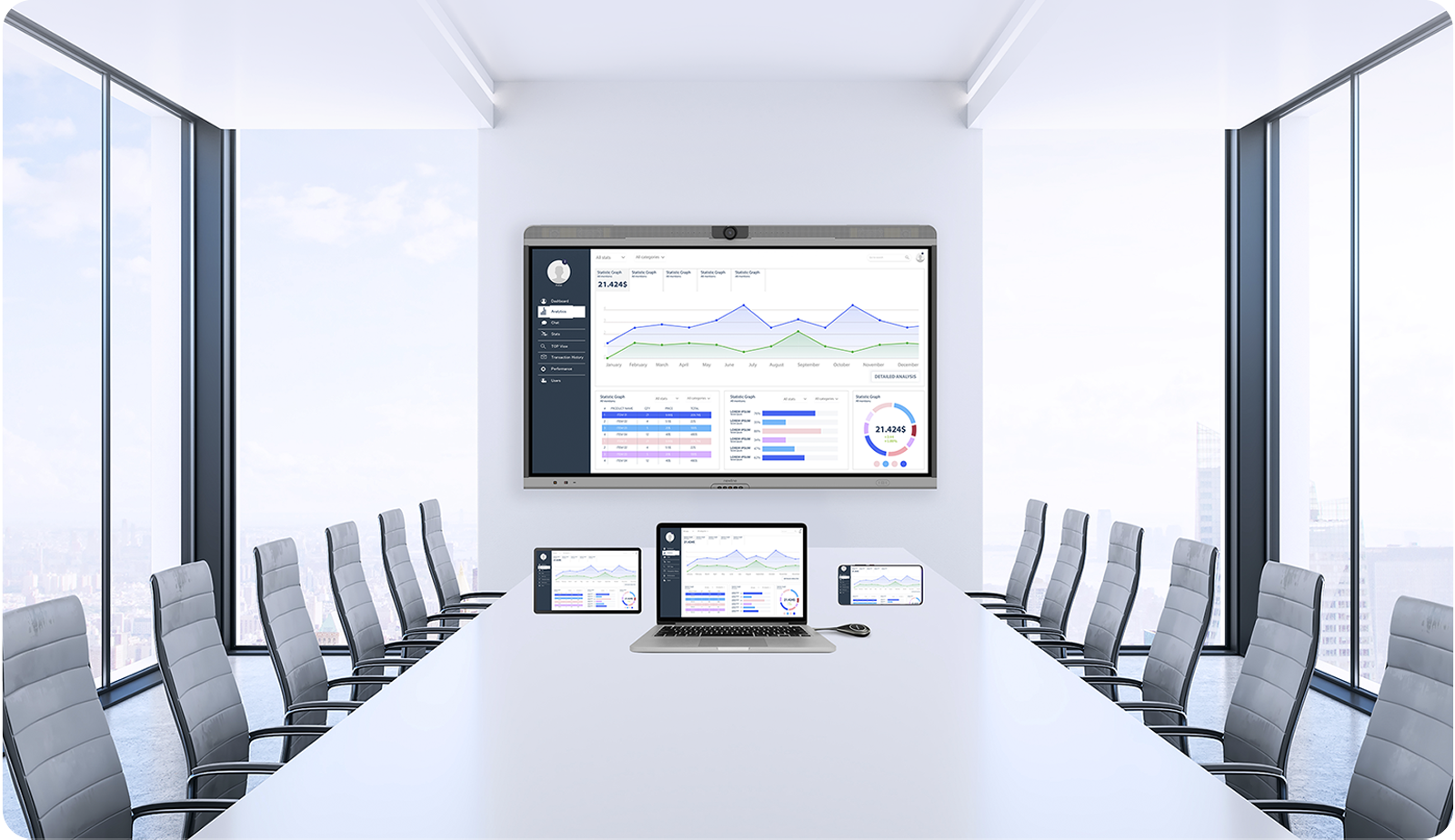 支持手机、投屏器、AirPlay、软件等多种投屏方式,快速投屏至会议平板;支持有线及无线BYOM,个人设备调取大屏的专业音视频能力;实时批注,轻松分享会议纪要,异地团队也能合作无间。