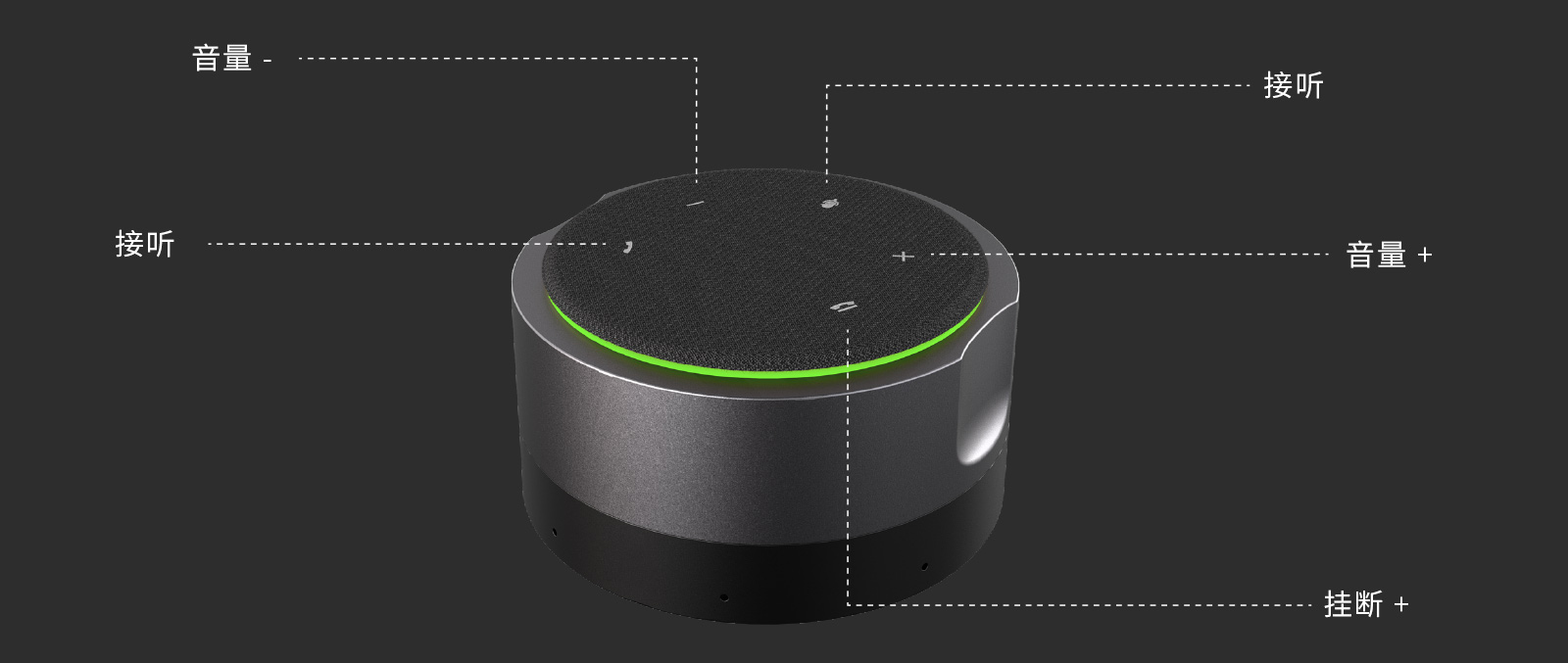 具有接听、挂断、静音、音量增、音量减五个按钮;配合腾讯会议时支持静音状态同步,支持切换到原声拾音模式,关闭AI降噪功能,拾取真实的现场声音,满足娱乐、演艺、拍摄等应用场景。