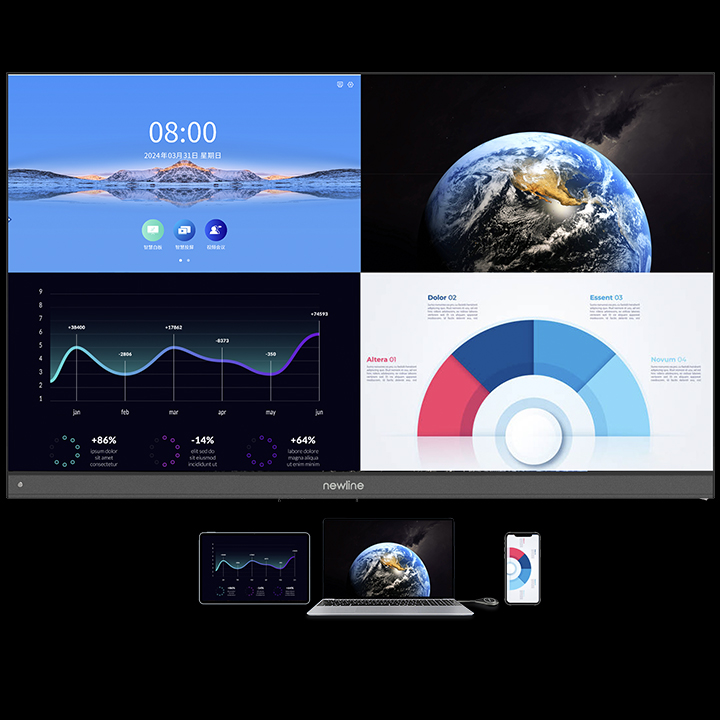支持手机、投屏器、AirPlay、软件等多种投屏方式,同时支持四分屏显示,实时批注,轻松分享会议纪要。