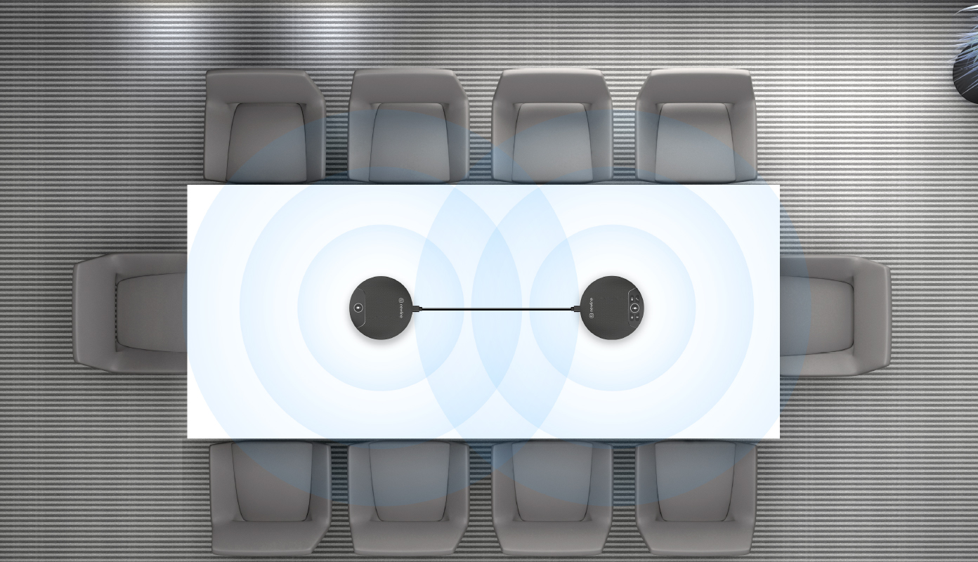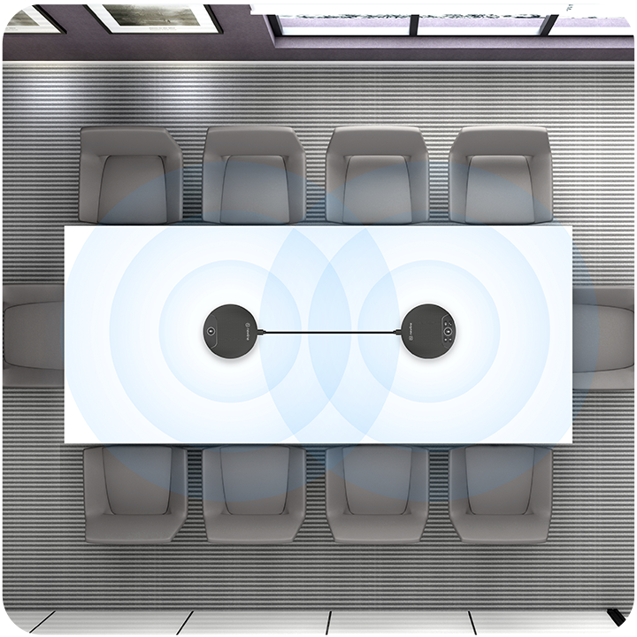 支持有线级联,两个全向麦克风串联使用,在中小型会议室中能轻松实现全覆盖,确保每个参会者的发言同样清晰可闻。